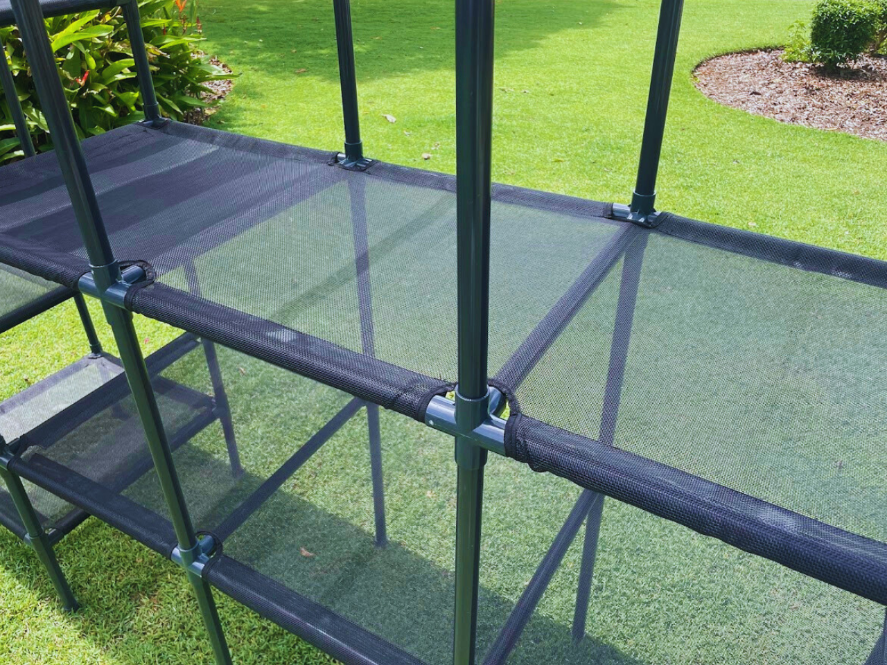 Mehrere Sitzflächen und Plattformen: Geräumige Ebenen zum Klettern, Springen und Strecken, die den natürlichen Instinkten Ihrer Katze entgegenkommen. Wetterfeste Konstruktion: Entwickelt, um Sonne, Regen und Wind standzuhalten, wodurch er perfekt für den Außenbereich geeignet ist, während er gleichzeitig sicher und stilvoll für Innenräume ist. Stabile Basis: Breite, bodennahe Stützen mit rutschfesten Füßen für Sicherheit und Stabilität auf jeder Oberfläche, drinnen oder draußen.